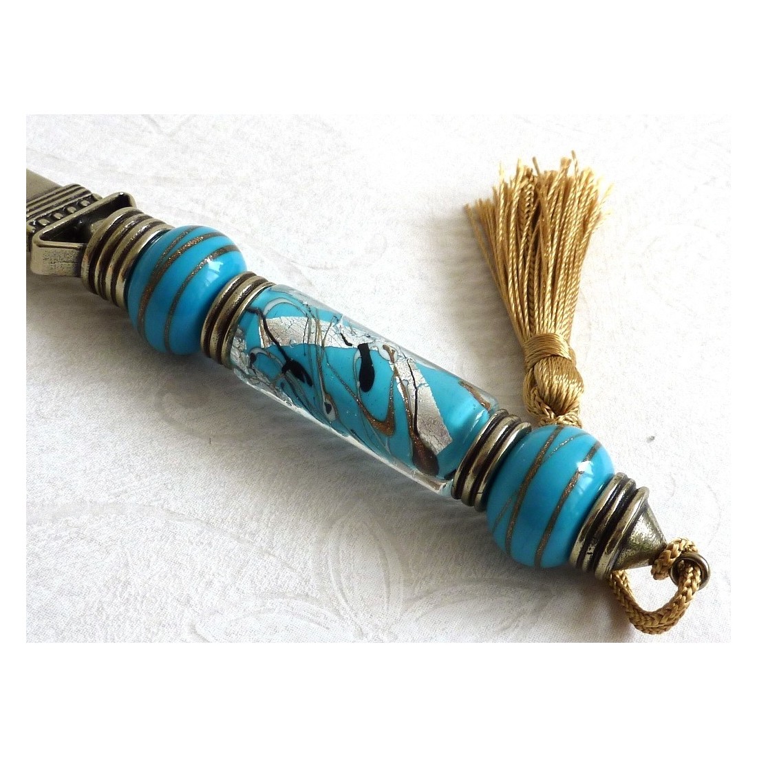 Brevåbner af glas og nikkel-sølv. En udsøgt venetiansk stil, der er blevet omdefineret. Dette vil gøre en elegant gave og se vidunderlig ud på dit skrivebord. Håndlavet med Murano-glas. Fås i forskellige farver.