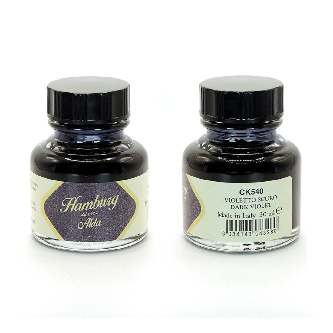 Hamburg Kalligrafi blæk - dybe violet (ALDA) Er en høj kvalitet 30 ml dip pen blæk udviklet ved hjælp af traditionel europæisk blækfremstillingsekspertise. Tilbyder glat flow og en rig dybe violet tone, er den ideel til kalligrafi, bogstaver og kunstnerisk skrivning.