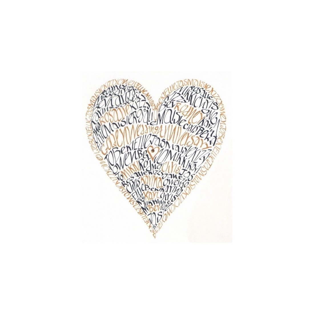 Dette vidunderlige kunstværk har dine efternavne skrevet igennem i Jane's egen kalligrafiske stil. En fantastisk gave til enhver begivenhed såsom bryllupper eller jubilæer.