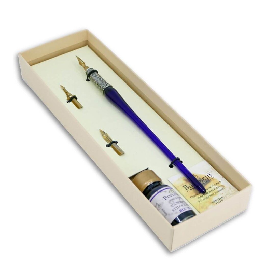 På Calligraphy Arts Storbritannien, vi vælger Premium Calligraphy Tools, Sealing Wax Tilbehør, Stationery Produkter og Heritage Inspirerede Skrivebordsstykker til kunder, der værdsætter ægthed og kvalitet. Det Bortoletti Pisani Murano Glass kalligrafi sæt er blevet valgt til sin elegante præsentation, alsidigt skrivepotentiale og stærk forbindelse til venetiansk håndværk.