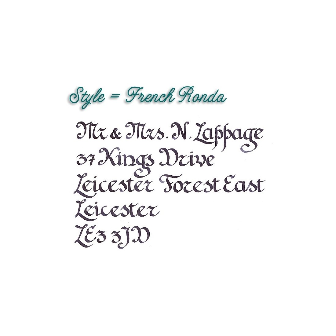 Fügen Sie der Vorderseite Ihrer Karte eine persönliche Note mit einem handschriftlichen Kalligraphie-Personalisierungsservice aus Calligraphy Arts, mit acht schönen Schriftstils zur Auswahl.