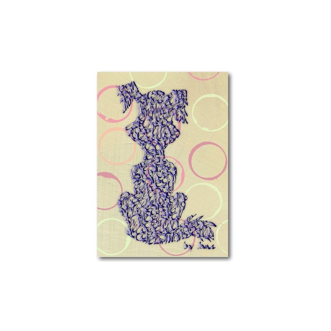 Lila Cartoon-Hund auf Kreise-Karte von Calligraphy Arts