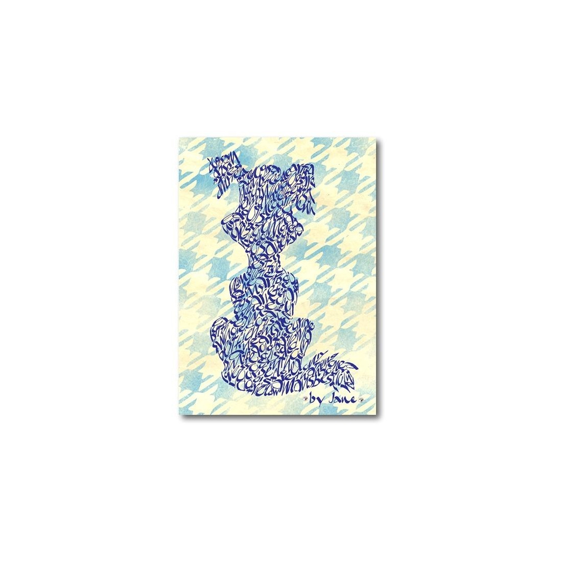 Die blaue Cartoon-Dog-Karte von Calligraphy Arts ist eine einzigartige handgefertigte Grußkarte, die von Jane entworfen wurde, mit einem Hunde-thematischen Kalligraphie-Wortkunst, einschließlich "mein kleiner Hund - ein Herzschlag an meinen Füßen" und "Hund ist der beste Freund eines Mannes" auf einem blauen dogtooth-Hintergrund.
