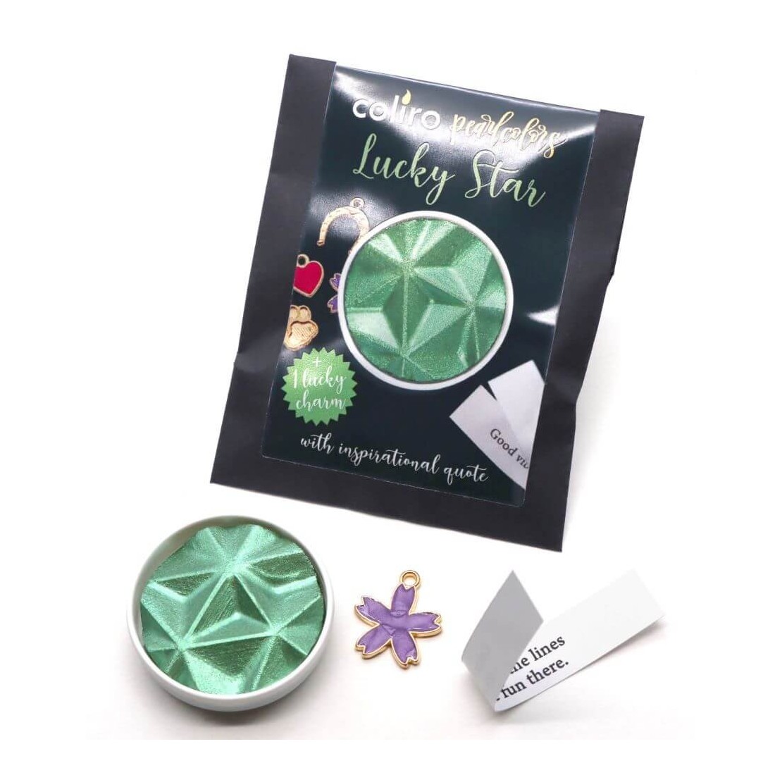 Mehr als nur eine schöne Farbe "Lucky Star" macht auch ein charmantes Geschenk. Jede Pan beinhaltet einen kleinen Lucky-Charme und ein inspirierendes Zitat, das sich in der Verpackung versteckt, und fügt einen zusätzlichen Hauch von Persönlichkeit und Freude für Kalligraphier, Künstler und jeden, der spezielle kreative Materialien genießt.