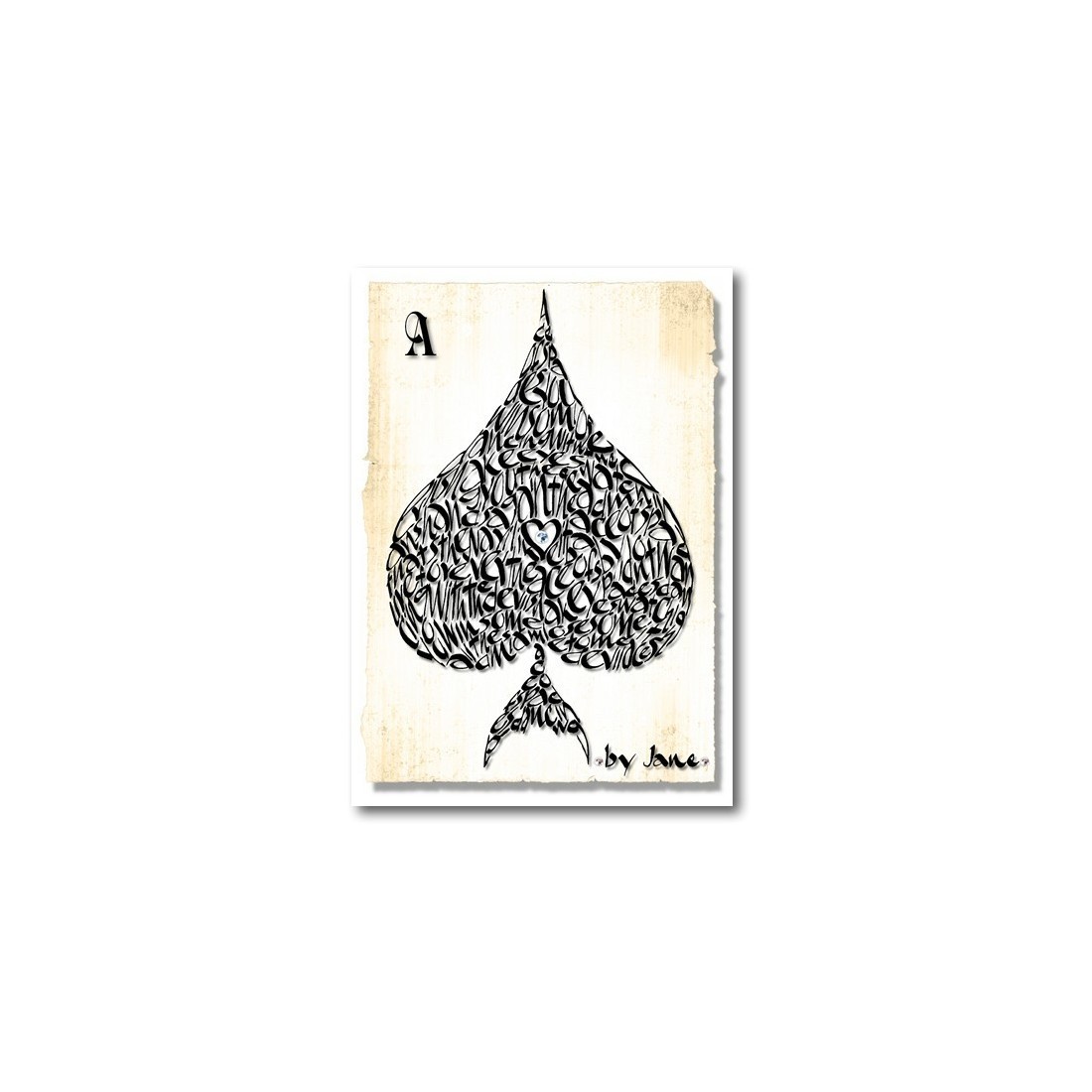 The Ace of Spades card from Calligraphy Arts is a uniquely designed handmade greeting card by Jane, featuring calligraphic word art including "The Ace of Spades", "Dancing with the Devil" and "You win some, lose some, it's all the same to me" on a distressed vintage-style background.