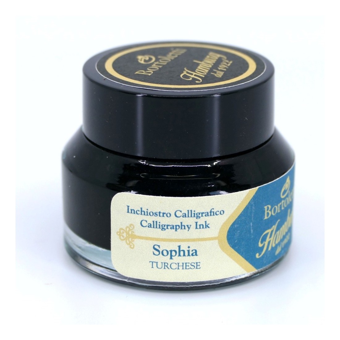 Bortoletti Calligraphy Ink – Turquoise (Sophia) is a premium 30ml dip pen ink produced in Italy by Hamburg for Bortoletti. Supplied in a wide-neck glass bottle for easy nib access, it provides smooth ink flow and a vibrant turquoise tone ideal for calligraphy and decorative lettering.