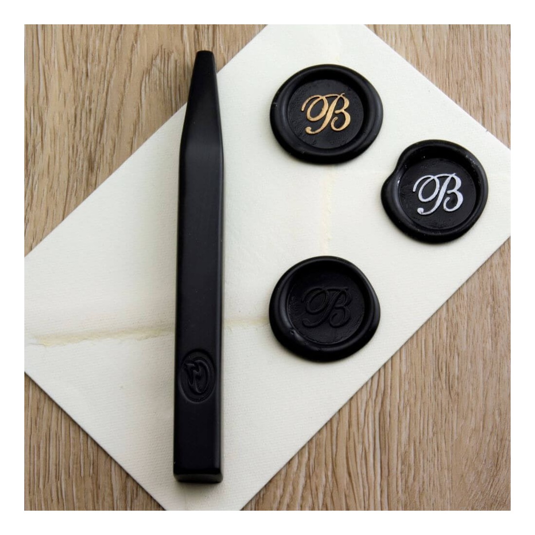 Black sealing wax offers a bold and sophisticated appearance, making it particularly suited to formal stationery, certificates, luxury packaging and contemporary monochrome designs. The strong contrast highlights engraved seal details with exceptional clarity.