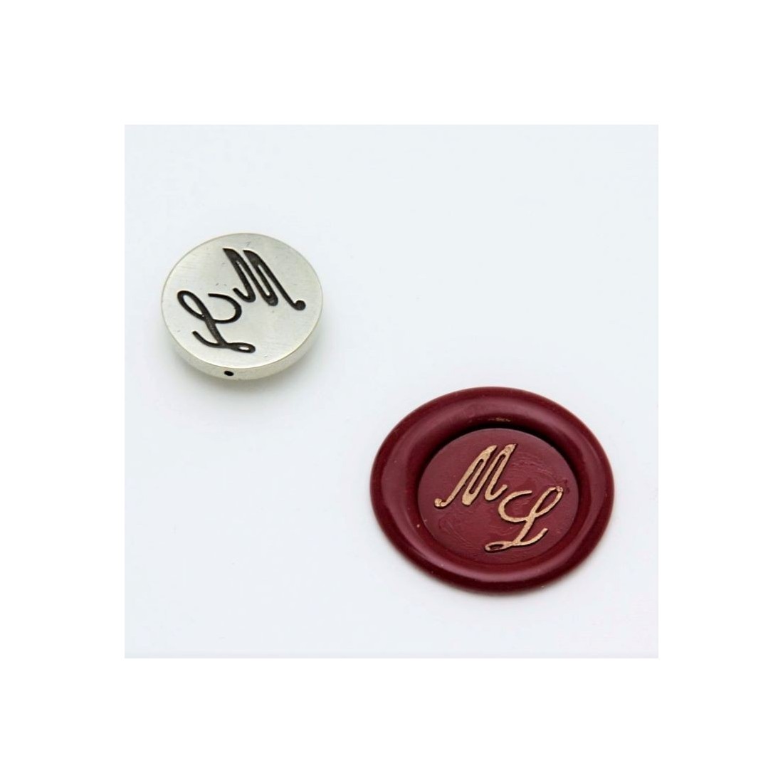 Bortoletti wax seal stamp – double cursive letters is an elegant interchangeable 22 mm wax seal stamp available in all 676 double initial combinations from AA to ZZ. Designed to fit Bortoletti wax seal handles, it is ideal for wedding stationery, personalised correspondence, gift wrapping, and refined monogram sealing.