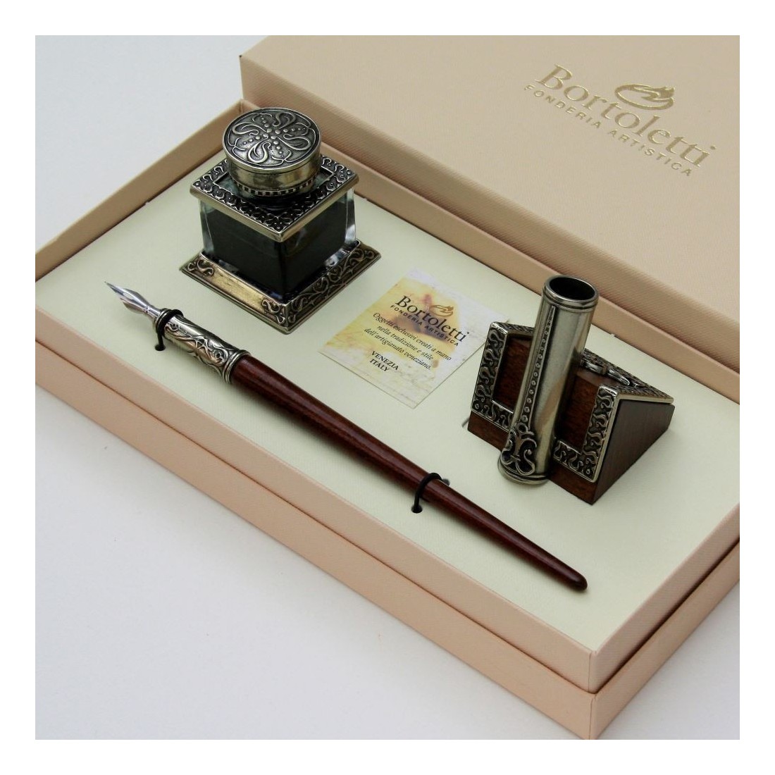 Bortoletti Pietro wooden dip pen, inkwell and pen holder set for elegant handwriting