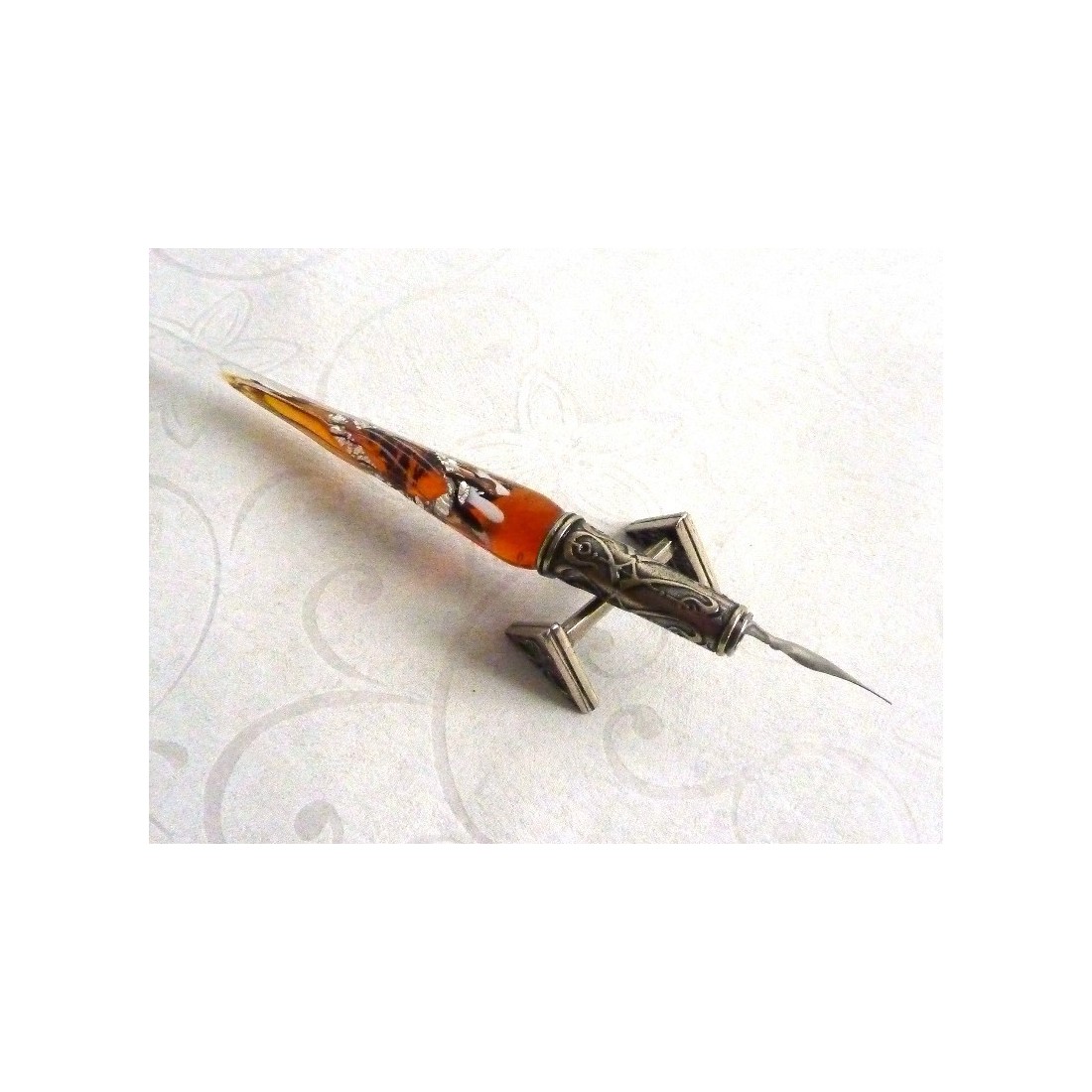 Calligraphy pen rest. A comfortable bed for your beloved pen, made in finely worked nickel silver. A small pearl of design and craftsmanship, this pen rest is unique. Manufactured in Italy by Bortoletti Fonderia Artistica.