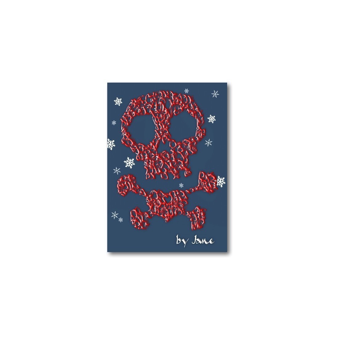 Our unique pirate Skull and Crossbones card is ready for the seasonal festivities with a Christmas red 3D effect and snowflakes on a dark blue background.