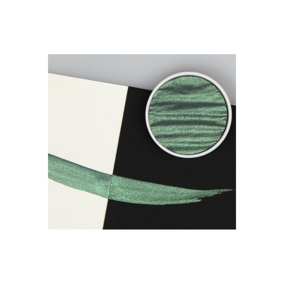 Infuse your art with the earthy and captivating shimmer of Coliro's Moss Green Pearlcolor. This 30mm handmade refill pan offers a striking green with a metallic luster, perfect for use in any of our empty palettes. Each Moss Green Pearlcolor comes beautifully packaged in paper with a label that can also be used for easy identification in a metal palette box. For enhanced presentation and storage, a metal box option is available. Crafted meticulously in Germany, Coliro Pearlcolors deliver a rich, smooth metallic finish that brings every artistic vision to life.