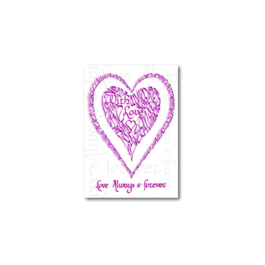 Let your true love know you care with this truly wonderful card. The main design is presented on a background "Love Always and Forever" text. Iridescent glitter and a sparkling diamante are at the heart of the card with other clear diamantes elsewhere.
