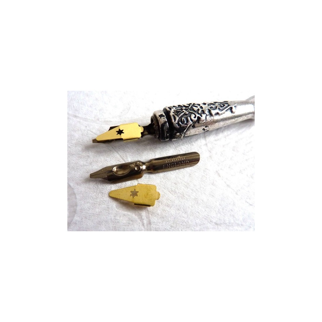 Manuscript round hand nibs and reservoirs