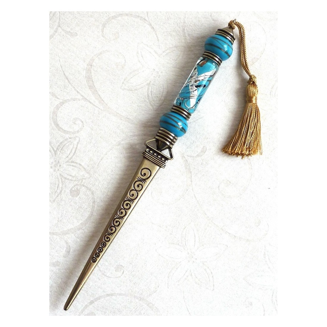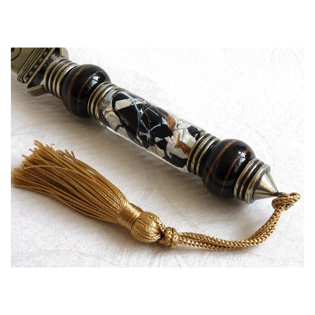Abrecartas de vidrio y alpaca. Un exquisito estilo veneciano que se ha redefinido. Esto será un regalo elegante y quedará maravilloso en su escritorio. Hecho a mano con cristal de Murano. Disponible en varios colores.