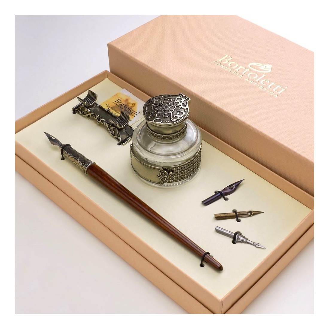 Bortoletti Es conocido por los elegantes instrumentos de escritura y accesorios de escritorio inspirados en Venecia, metalúrgico decorativo y artesanía tradicional italiana. El conjunto Gritti refleja esa herencia a través de su pluma de madera hecha a mano, detalles de bronce acabado a mano y balance de función y adorno reflexivo. Es un conjunto de escritura que combina la belleza, la practicidad y la calidad artesanal.