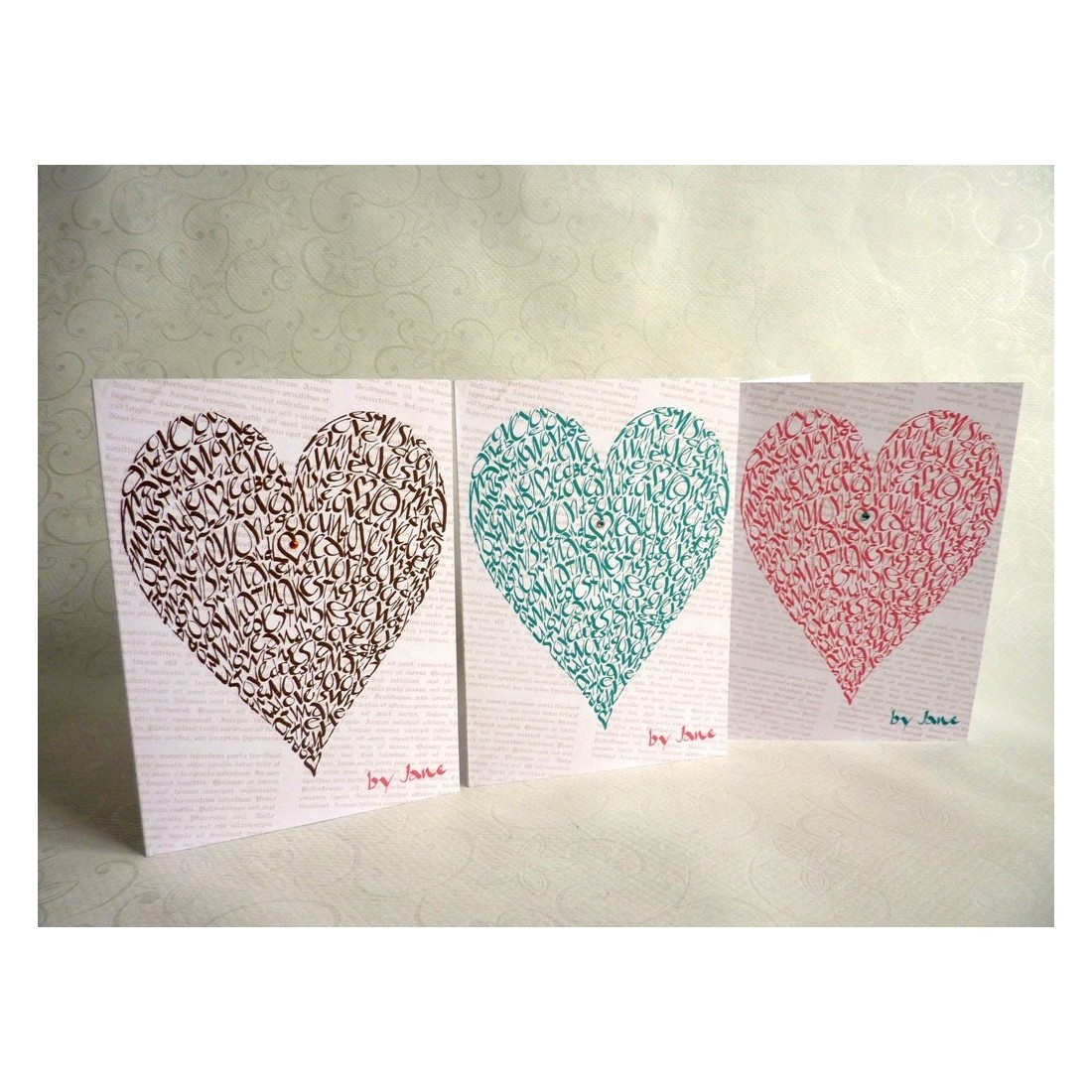 Diseñado por Jane y Marcado. Calligraphy Arts, esta tarjeta de felicitación refleja un enfoque creativo enraizado en la caligrafía real y el diseño de letras. Jane ha estado diseñando tarjetas desde 2011 y es un diseñador de arte y caligrafía con experiencia, brindando un fondo fuerte en letras, diseño decorativo y presentación creativa a cada colección. El resultado es una tarjeta que se siente personal, distintiva y cuidadosamente diseñada.