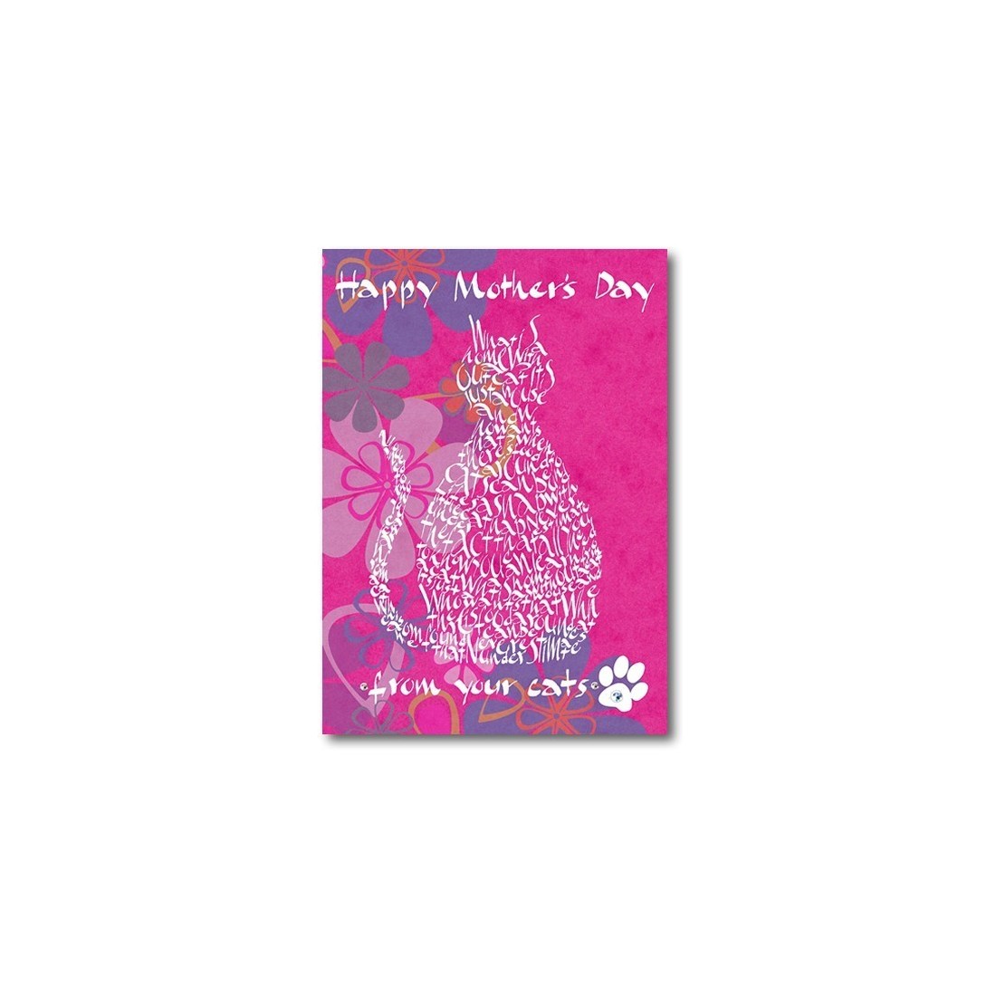 Los diamantes se colocan a ambos lados del texto en la parte inferior de la tarjeta, agregando un chispa sutil que realza el acabado hecho a mano. El resultado es una tarjeta que se siente reflexiva, creativa y distintiva, especialmente para mamás que comparten su hogar con más de un gato querido.