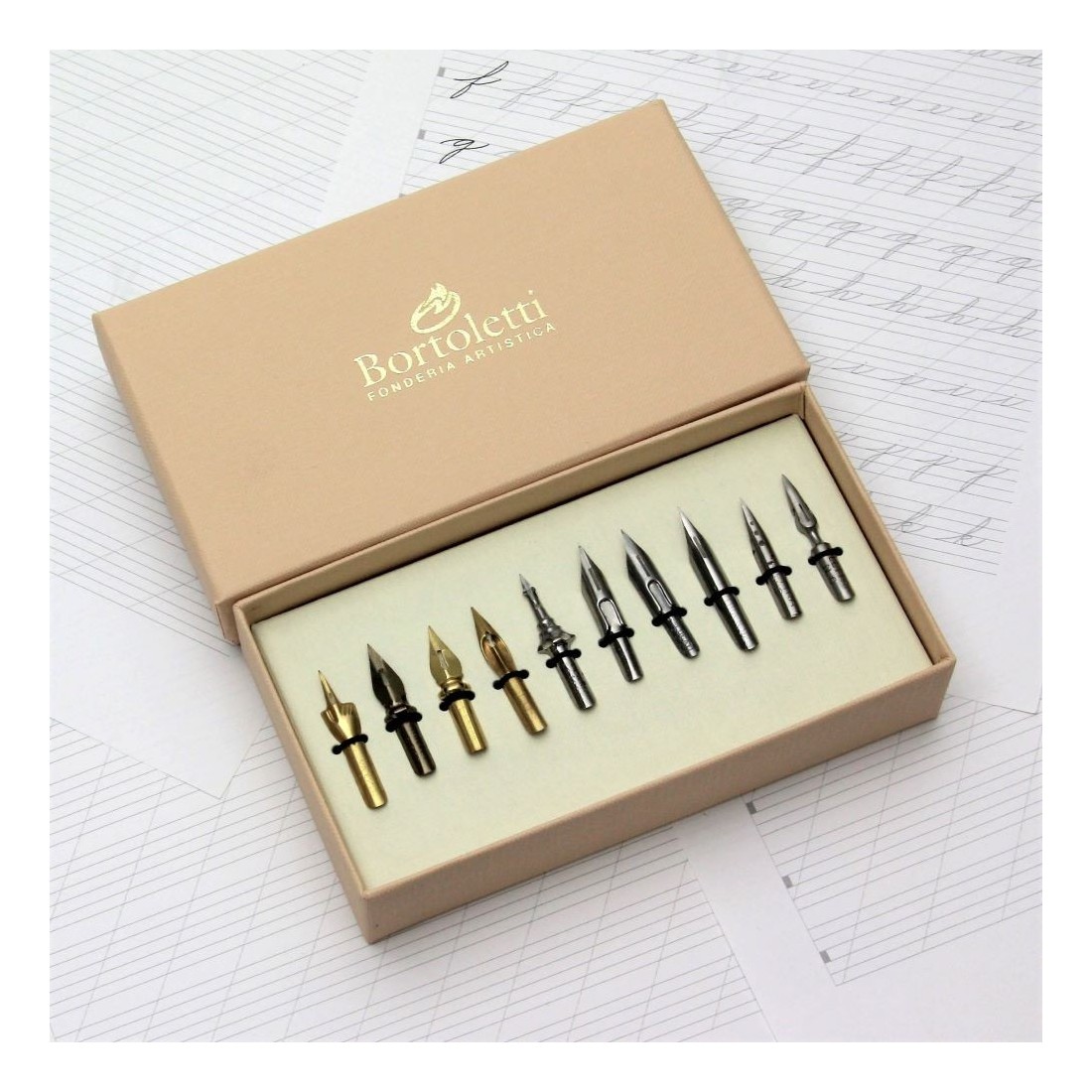 Bortoletti Es conocido por los elegantes instrumentos de escritura y accesorios inspirados en la artesanía tradicional y la apelación duradera de las herramientas de escritorio clásicas. Este conjunto de nibs de caligrafía de estilo vintage complementa lo más amplio. Bortoletti Gama de PEN, que ofrece a los clientes una forma auténtica y práctica de disfrutar del carácter de la pluma tradicional.