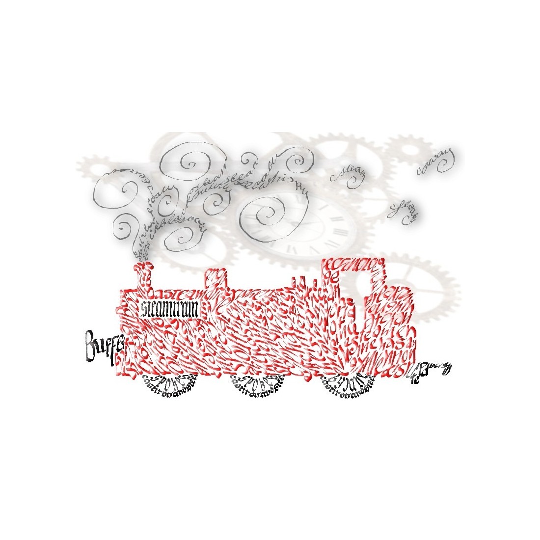Steamtrain, buffer, cast iron & steel, swirly floaty steam,