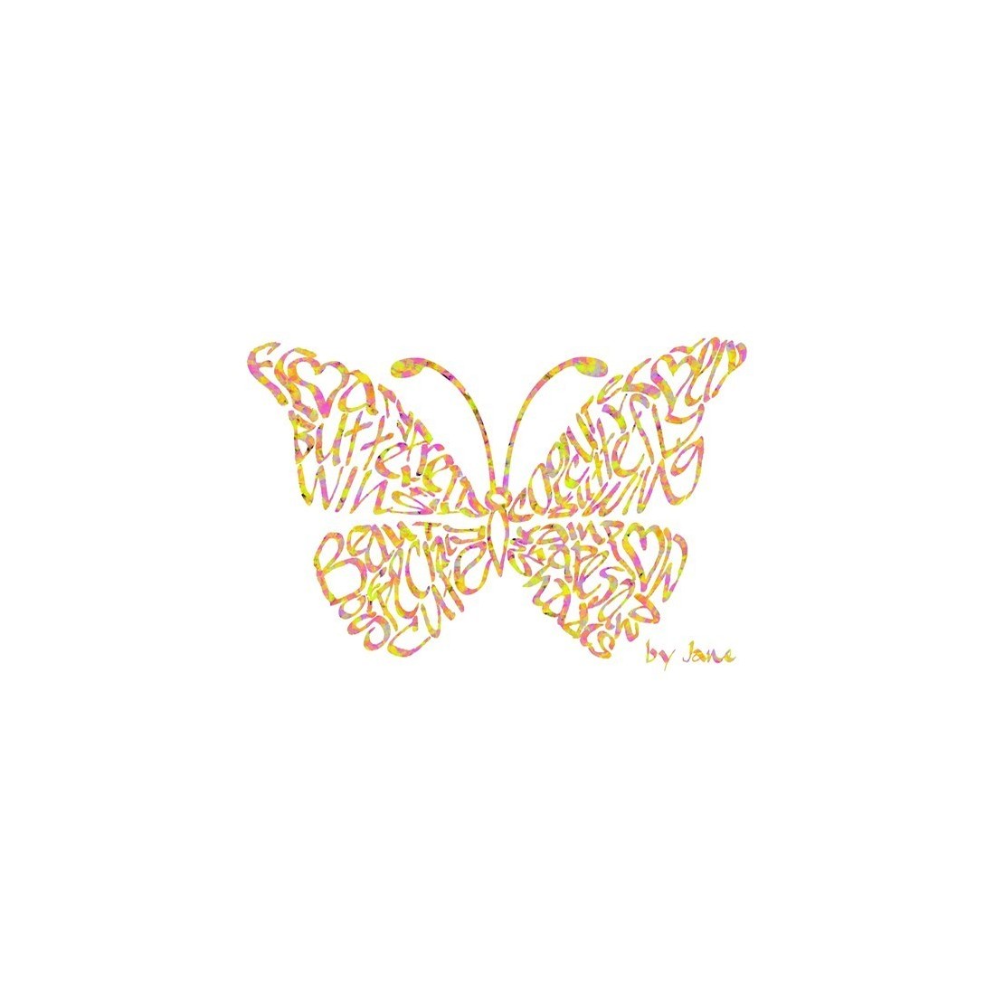 Valoisa ja kaunis konfetti värinen perhonen, kalligrafiaa kortin. Diamantes korosta siiven ja pään, kun kehon ja antennin molemmilla on kimallus sovelletaan tuoda esiin erityinen kimallus. Tämä ihana perhonen muotoilu heijastaa herkkää kauneutta kesällä puutarha siivekäs ystäviä.