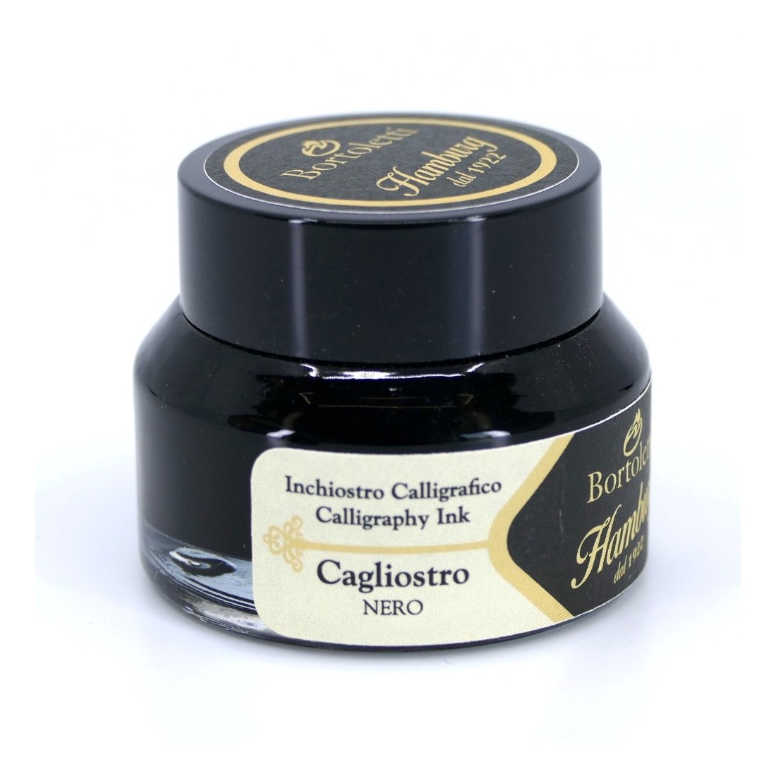 0 Bortoletti Musta kalligrafia, tunnetaan nimellä Cagliostro, on Italiassa tuotetun premium-kirjoitusmusteen Hamburg Musteet yksinomaan Bortoletti. Tämä voimakkaasti syvä musta muste tuottaa vahvan kontrastin ja poikkeuksellisen kirjoitustehokkuuden sekä modernille että perinteisille kalligrafialle.