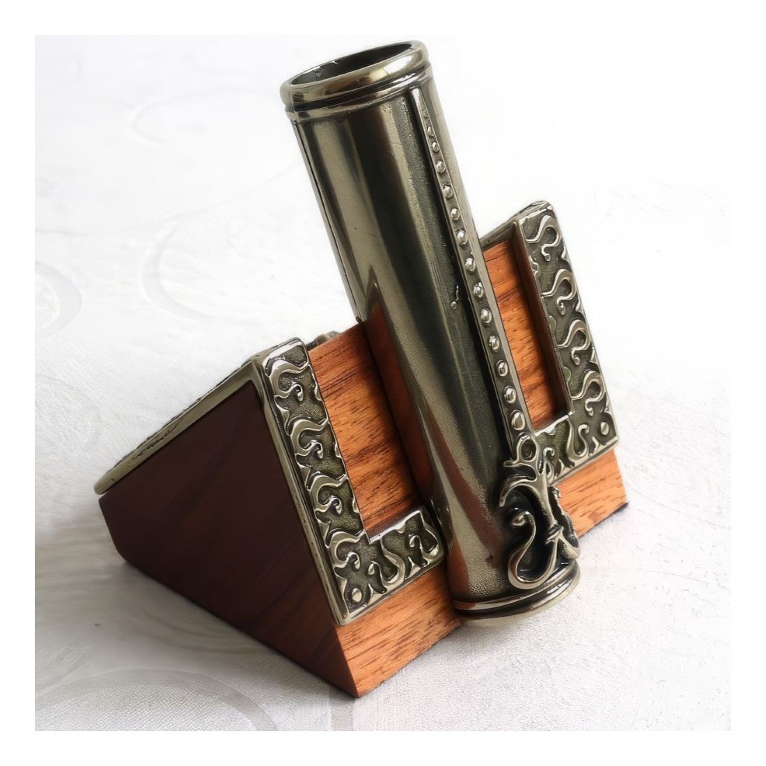 Puinen Dip kynä, Inkwell & Penpiter. Tämä sarja käsittää puisen kynän, jossa on pronssi nib-pidike nikkeli hopea ja muste. Nimle Silver Sisustus rikastuttaa puinen kynä, muste ja kynäpidike. Valmistettu Italiassa Bortoletti Fonderia Artistica.