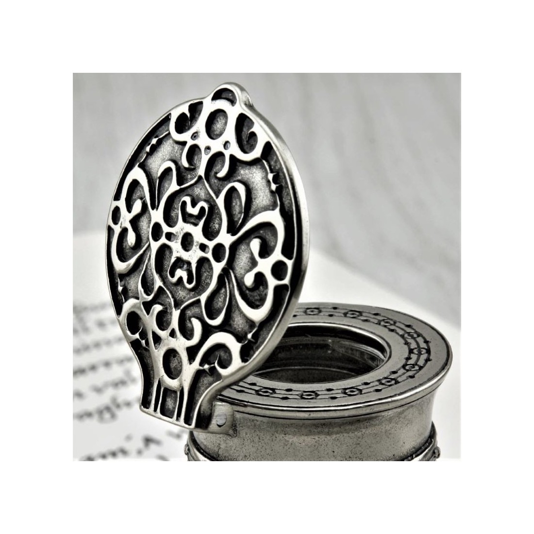 Inkwell on valmistettu lasista ja viimeistelty hienoksi käsin chiselled pronssi, mikä luo koristeellinen polttopiste, jossa on reaaliaikainen työpöydän läsnäolo. Sen sisustettu saranoitu kansi lisää lisämerkkiä ja hienostuneisuutta, mikä tekee musteesta pienen gemin suunnittelun ja käsityötaitonsa itse.