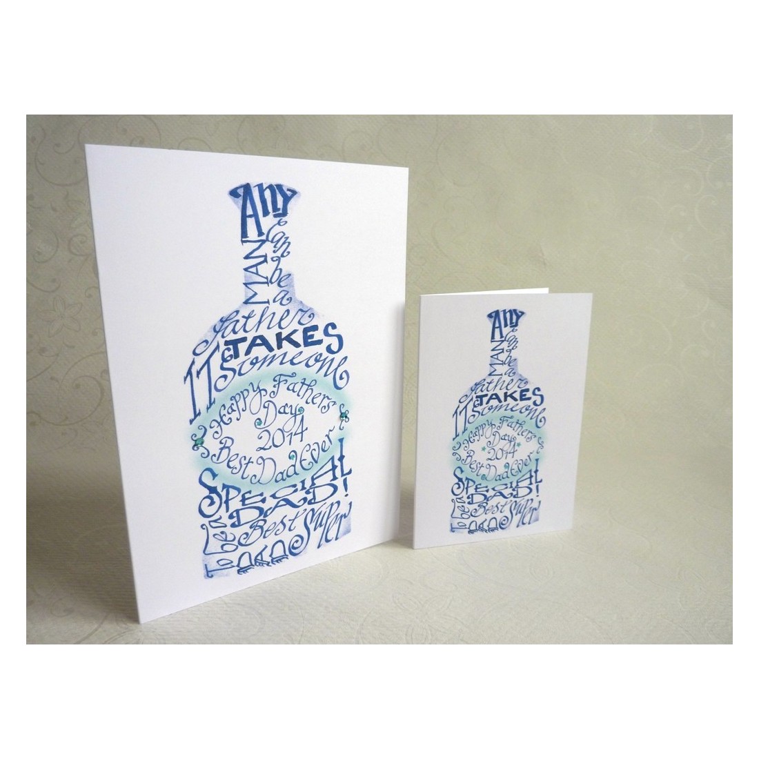 Tämä kortti on luotu kalligrafia-innoittamana sanamuodon avulla, jotta se olisi henkilökohtaisempi ja ilmeikäs tunne. Suunnittelu sisältää sanoja "Jokainen ihminen voi olla isä, se vie jonkun erityisen olevan isäni", onnellinen isänpäivä, paras super isä, joten se on lämmin ja hellä valinta isänpäivälle.