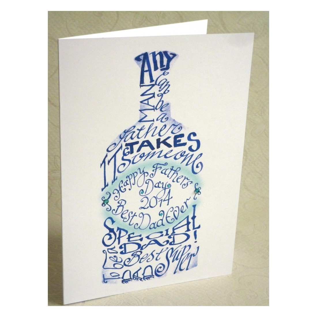 Paras isä Isänpäiväkortti on huomaavainen käsintehty kortti Calligraphy Arts, jonka Jane on suunnitellut juhlia isiä lämpöä, väriä ja mielekästä sanamuotoa. Luodaan sininen ja turkoosi hieman lisätty bling, tämä muotoilu tarjoaa sydämellisen ja erottuvan tavan merkitä Isänpäivä.