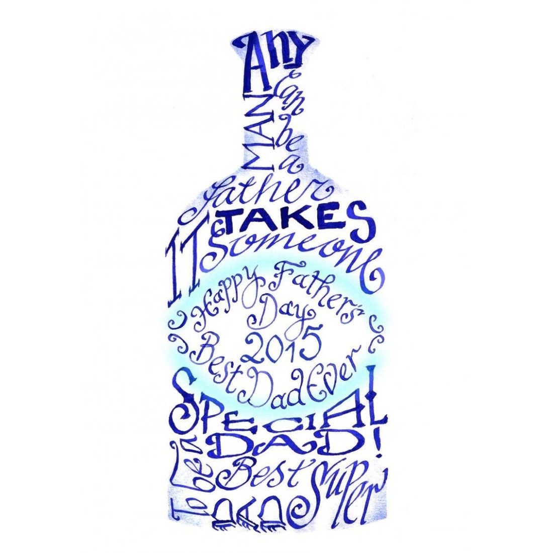 Paras isän isänpäivä kortti Calligraphy Arts On käsintehty kortti, jonka on suunnitellut Jane, sanat "Jokainen ihminen voi olla isä, se vie jonkun erityisen olevan isäni", "onnellinen isänpäivä" ja "paras super isä" sävyissä sininen ja turkoosi kanssa kimallusta.