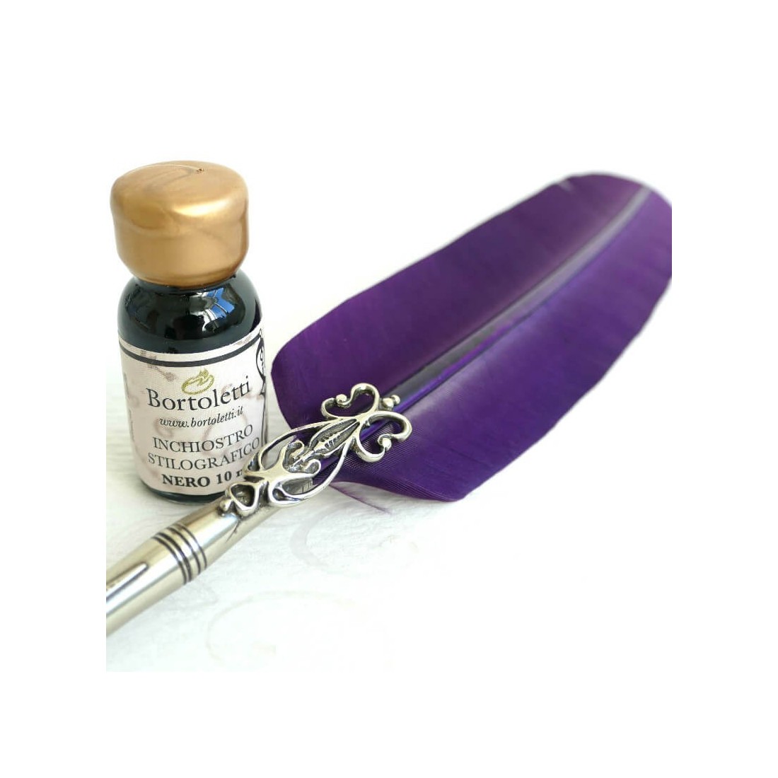 Le stylo plumes de plumes est fabriqué à Venise par Bortoletti maîtres artisans et fini avec une poignée de bronze bronzée à la main. Ce métal décoratif donne au stylo un caractère italien distinctif, le transformant d'un simple outil d'écriture dans un objet élégant pour une utilisation et une affichage.