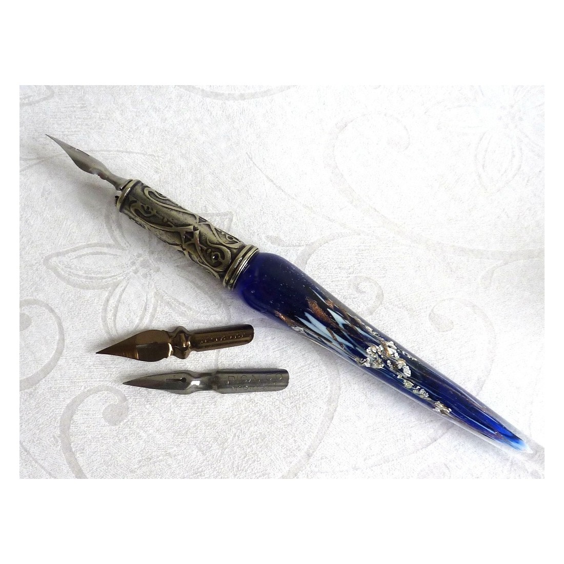 Stylo & encre de calligraphie en verre feuille d'argent