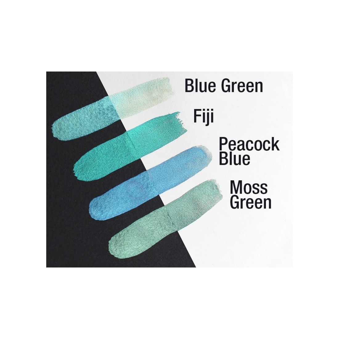 La ricarica Fiji Pearlcolor, fatta a mano in Germania, emana un turchese tropicale metallico. Include imballaggio etichettato per l'uso in una scatola di tavolozza di metallo.