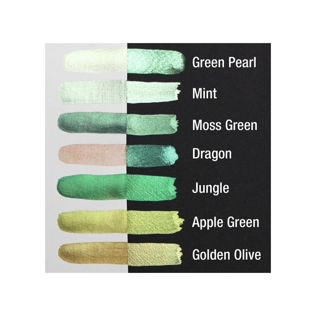 Il ripieno Jungle Pearlcolor, fatto a mano in Germania, presenta un verde metallizzato profondo e ricco. Include imballaggio etichettato per l'uso in una scatola di tavolozza di metallo.