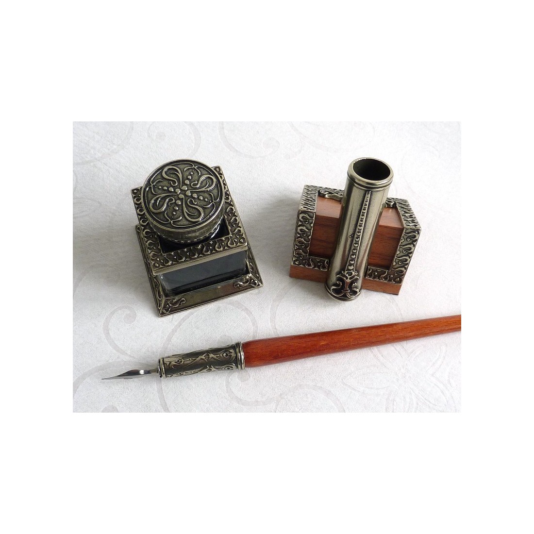 Penna in legno, inkwell e supporto per la penna - interrotto