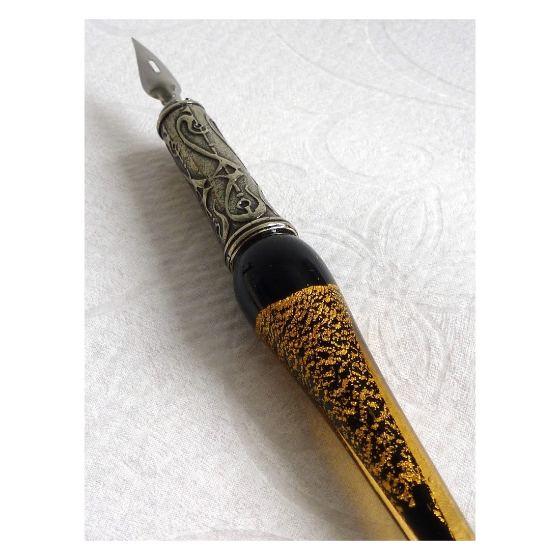 Foglia oro penna vetro calligrafia, pennini e inchiostro
