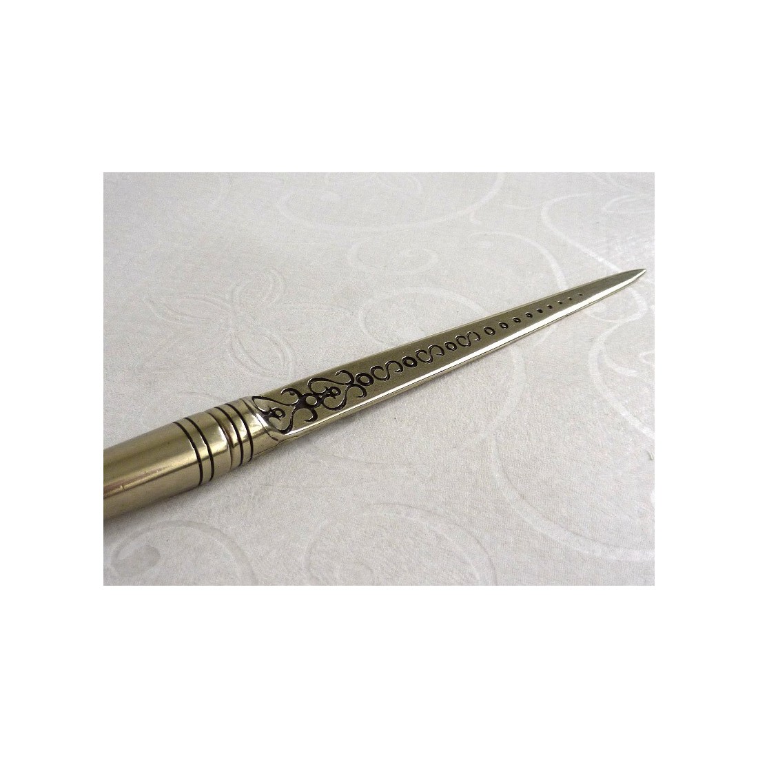 Apri lettere e penna dip in uno. Un ingegnoso set di penne calligrafiche, dove la penna in argento nichel è meravigliosamente decorata, è anche un apri lettere. Include una bottiglia di inchiostro.