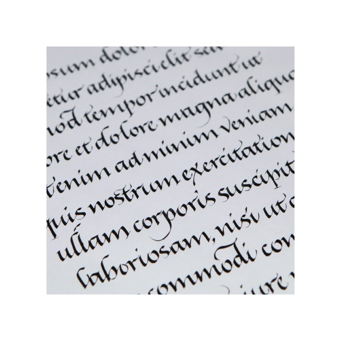 De enigszins dikkere formulering zorgt voor een sterke pigmentdekking over papier, perkament- en Vellum-oppervlakken, waardoor de gewaagde belettering met een uitstekend contrast en diepte wordt geproduceerd.