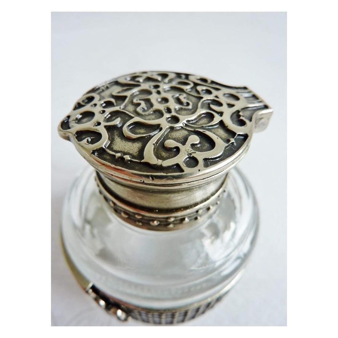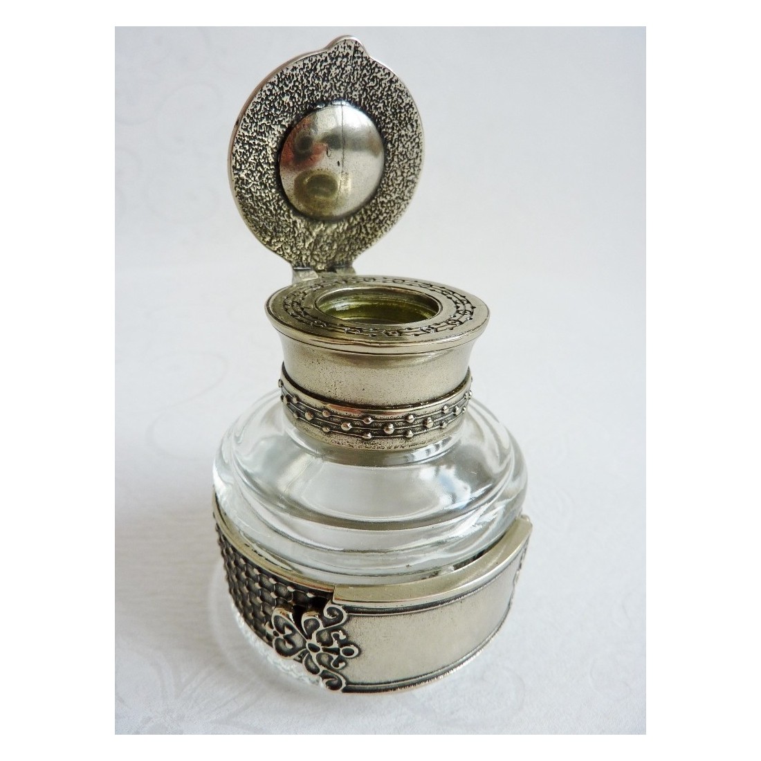 Deze elegante inktpot van glas en handgemaakt nikkel-zilver heeft een sierlijke scharnierende dop en geeft je de mogelijkheid om een naam op de voorkant te graveren, waardoor het een ideaal cadeau is. Gemaakt in Italië door Bortoletti Fonderia Artistica.