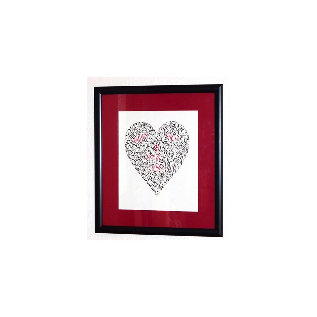 Een fantastische kans om een prachtig hartontwerp op maat speciaal voor jou te laten maken. Het wordt om een heel goede reden "The Heart of my Family" genoemd - dit prachtige stuk heeft je familienamen erin geschreven in Jane's eigen kalligrafische stijl. In het midden van het hart van dit prachtige ontwerp is een rode diamante.
