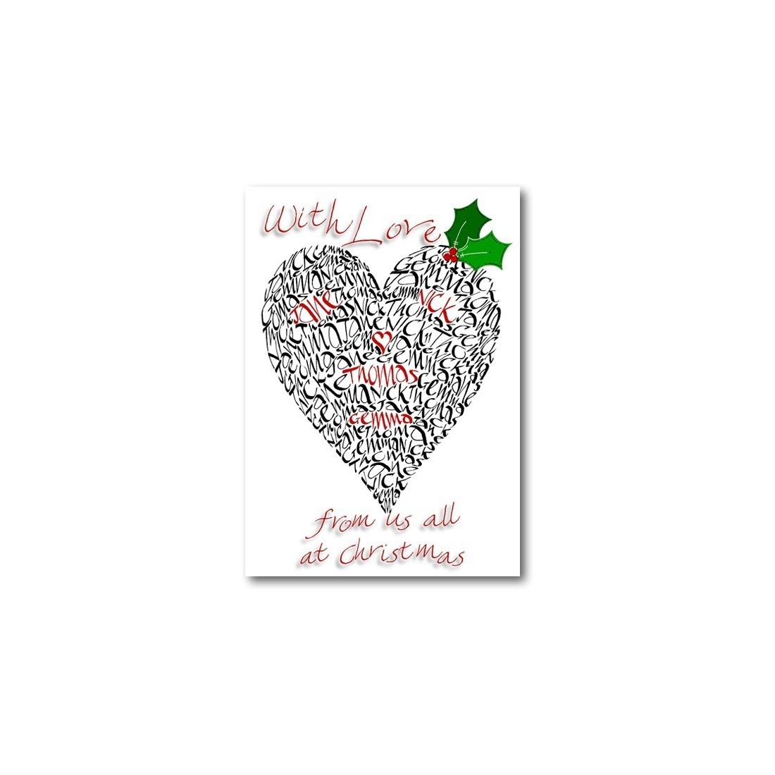 Om onze "Hart van de Familie" kunstwerk te vullen, kunnen we creëren prachtige Kerstkaart packs met de namen van uw familie geschreven in. Waarlijk, uniek origineel. Minimaal 10 kaarten.