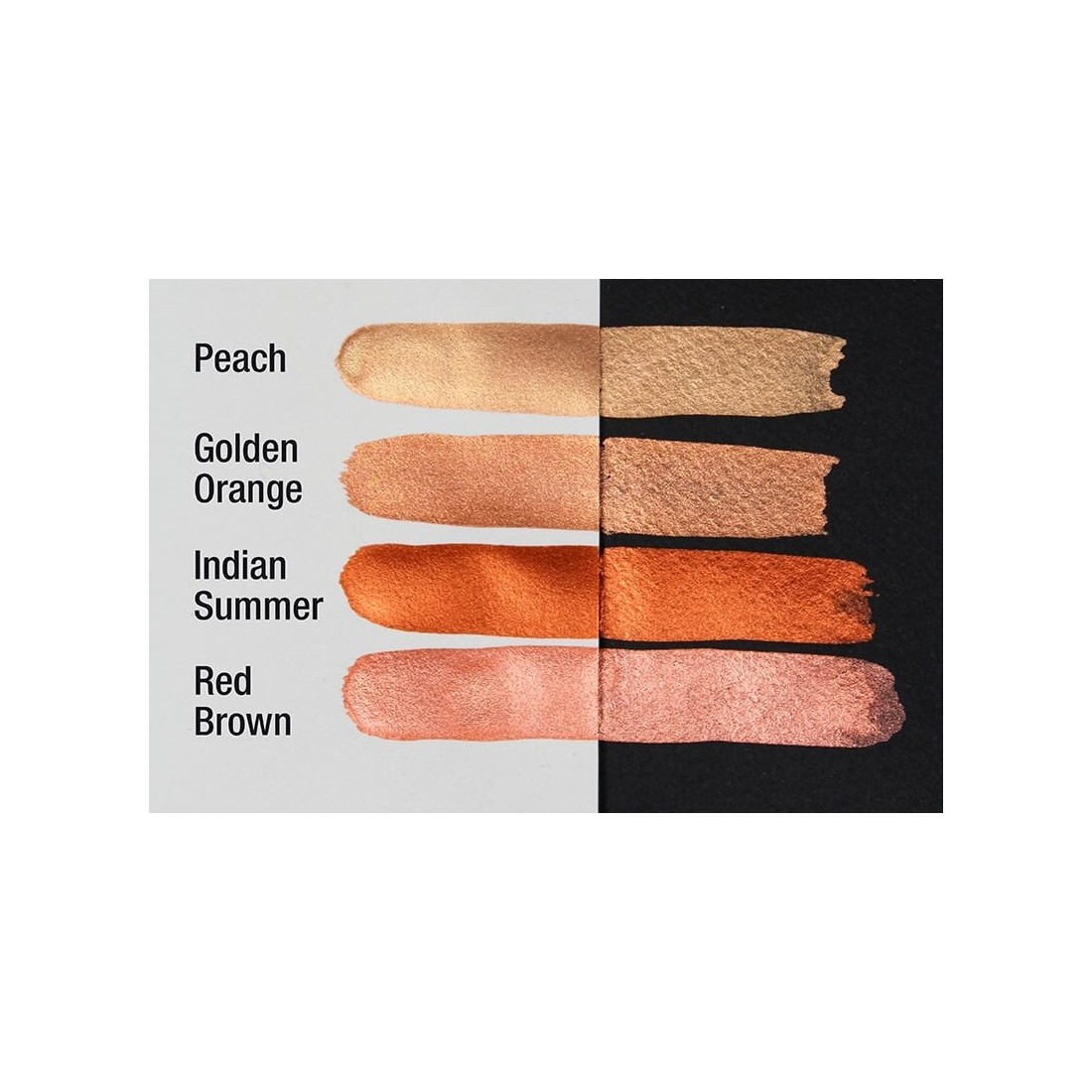 De Indian Summer Pearlcolor, handgemaakt in Duitsland, biedt een warme, gouden metalen glinster. Inclusief etikettering voor gebruik in een metalen paletdoos.
