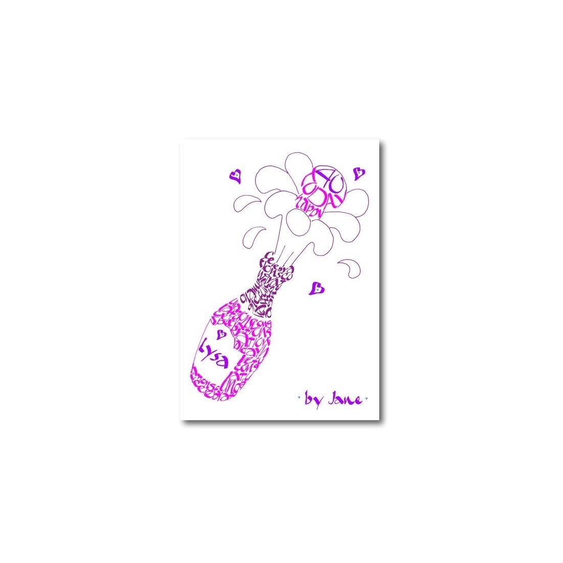 Een handgemaakte vieringkaart met gepersonaliseerd champagne flesontwerp