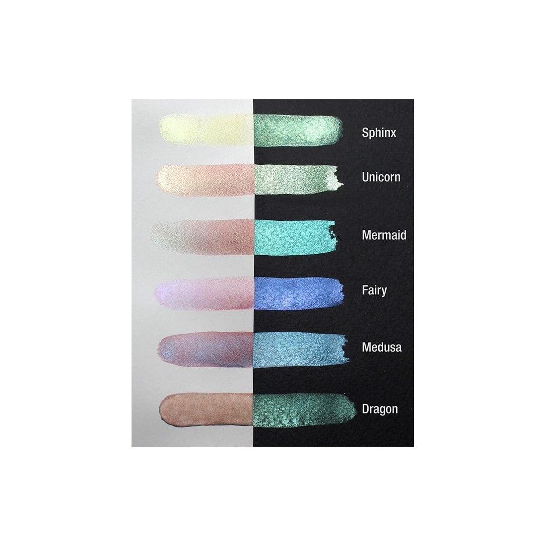 Unicorn Pearlcolor, handgjord i Tyskland, ger en magisk iriserande glimmer. Inkluderar märkt förpackning för användning i en metallpalettlåda.