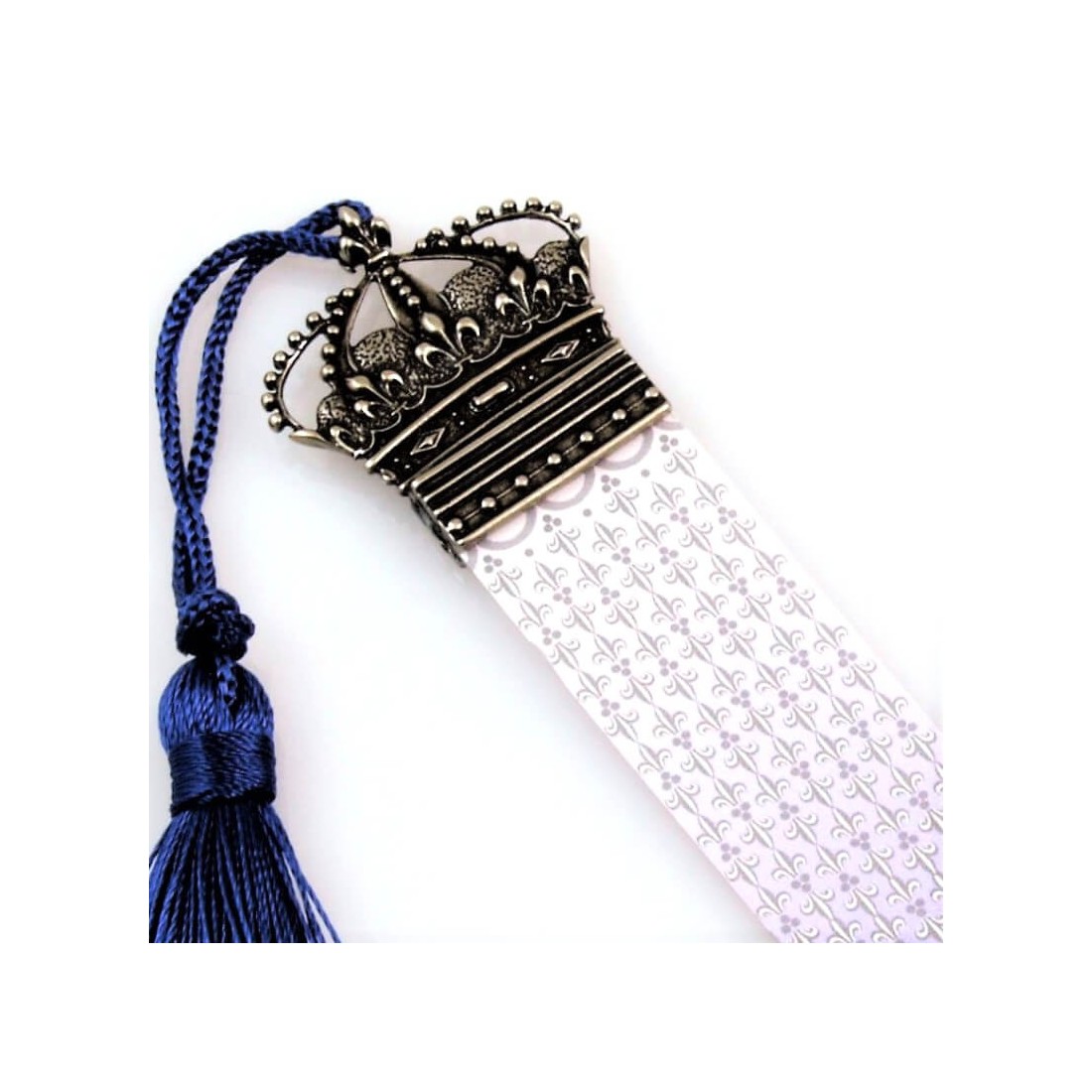 Kronmotivet är dekorerat med den ikoniska fleur-de-lis, en symbol som historiskt är associerad med franska royalty och adel. Används i århundraden som ett emblem av makt, prestige och arv, lägger Fleur-de-Lis ett klassiskt dekorativt element som ger detta bokmärke en särskiljande historisk karaktär.