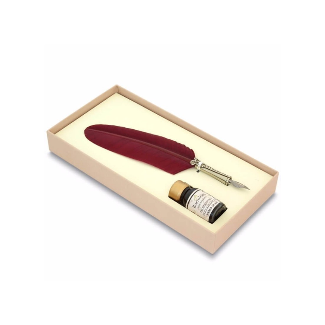 Bortoletti Classico burgundy fjäder quill penna och bläck set83