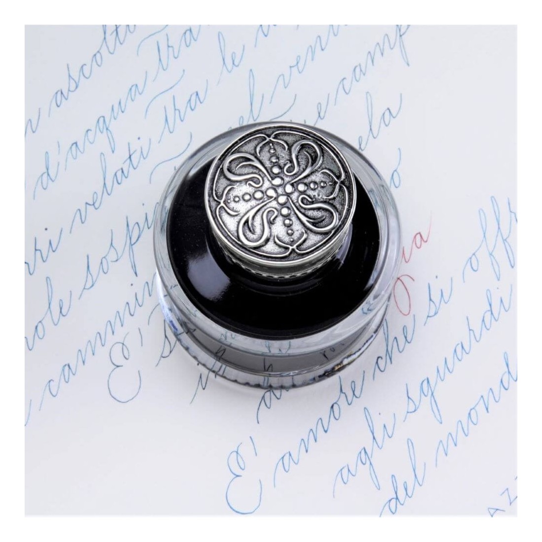 Denna inkwell innehåller högkvalitativ Bortoletti - Hamburg kalligrafi bläck, känd för sin rika pigmentering och stark färgretention en gång torr. Cagliostro Black Black framkallar mysteriet och djupet av alkemisk tradition, som producerar djärvt, uttrycksfullt bokstäver med utmärkt flöde.