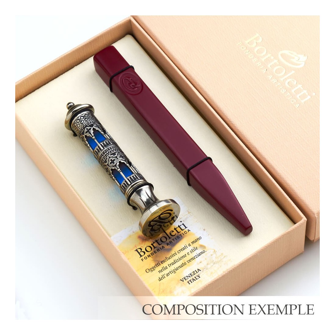 Genom ett noggrant urval av traditionella venetianska symboler och masterhantverk, samlar historiskt inflytande med modern design för att skapa en tätningsstämpel rik på karaktär och personlighet.