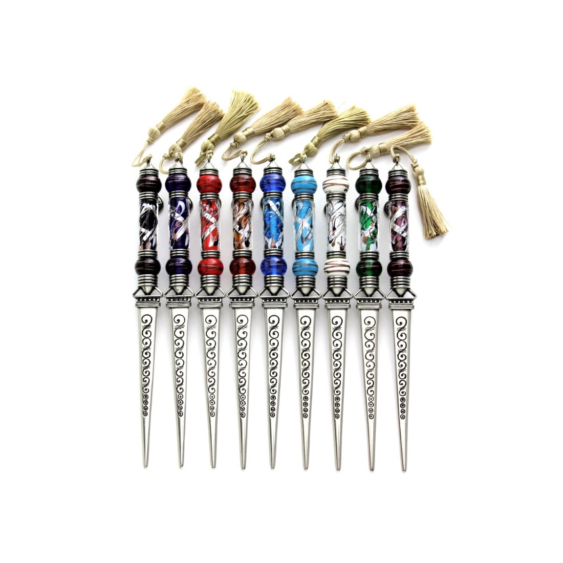 Olika färger av italiensk brons brevöppnare med Murano glaspärlor av Bortoletti